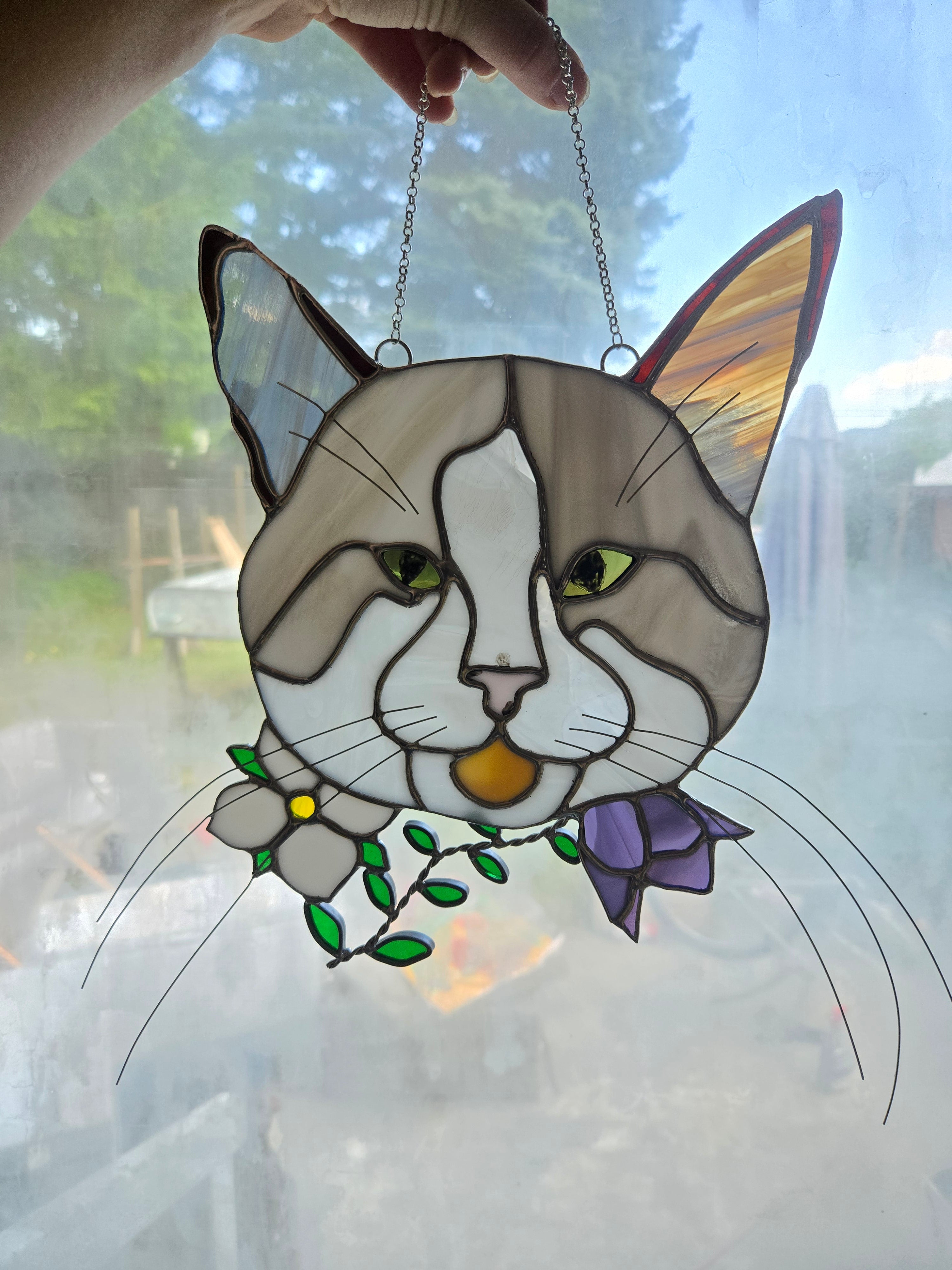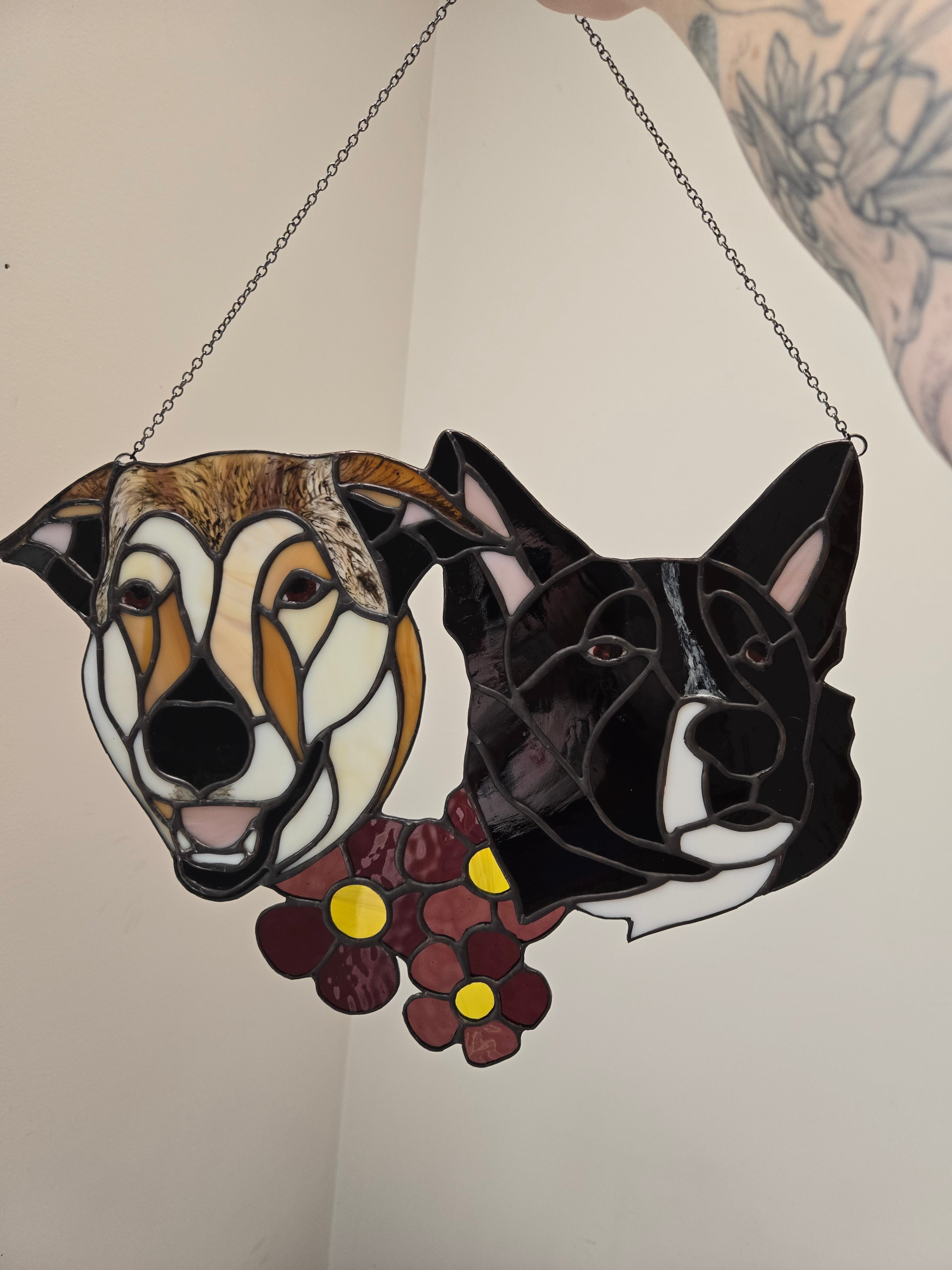 Capture the unique spirit of your beloved companion in glass. At Ethereal Glassworks, I specialize in creating handcrafted stained glass portraits that transform your favorite pet photos into vibrant, light-catching works of art.
