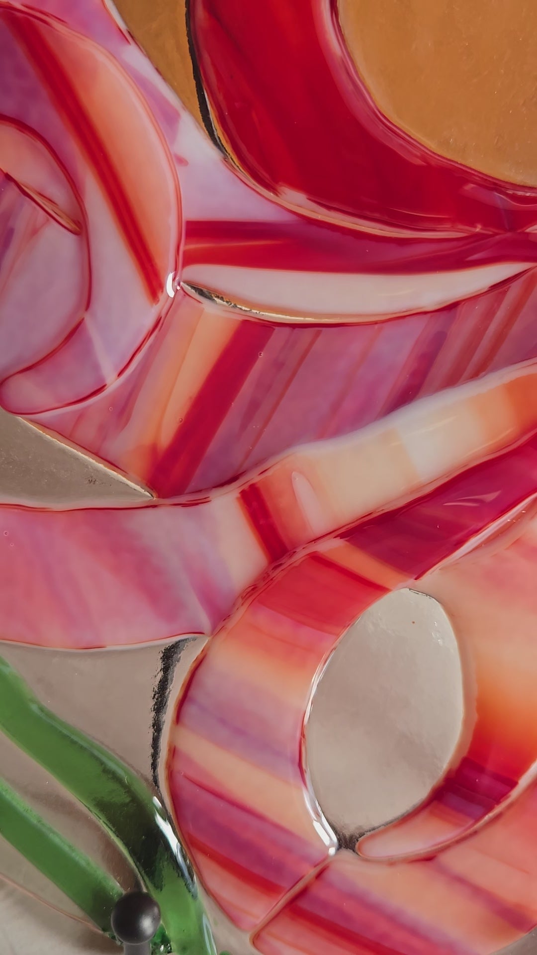 ​Hand-assembled with layers of premium art glass, the octopus features deep crimson and warm amber swirls that glow with a life of their own when placed in natural sunlight. Every tentacle and kelp leaf is individually cut and kiln-fired to create a beautiful, multidimensional texture.